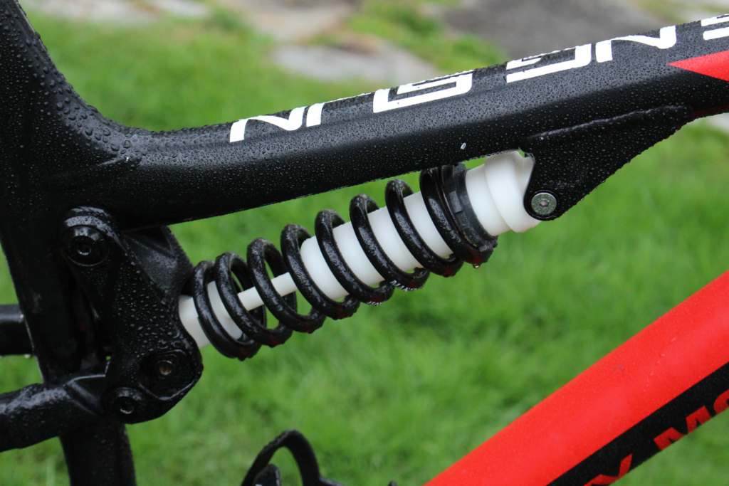 What started as a simple 3D-printed shock body to test-fit on my mountain bike has sparked into an active, electronically-controlled damping system controlled by a micro neural network. The basic shock design (August 2024) is shown below, along with the 3D-printed part test-fitted to my 2018 Rocky Mountain Altitude A50.
