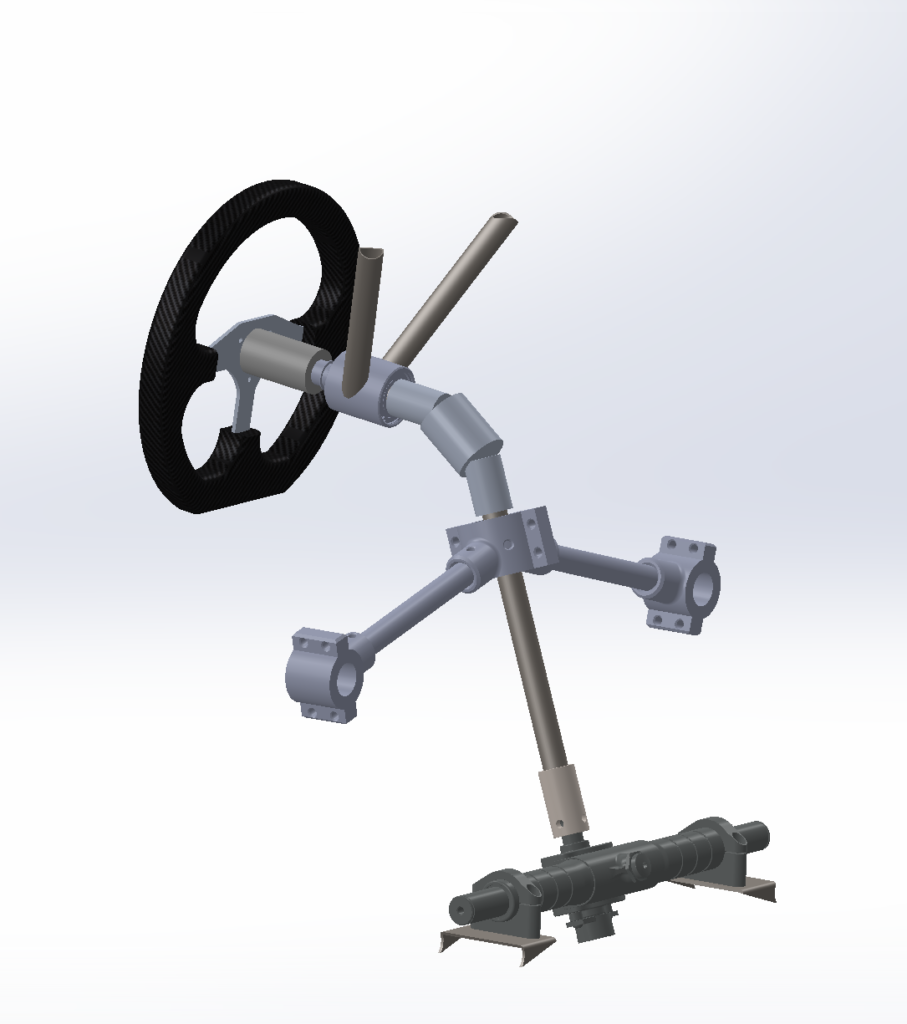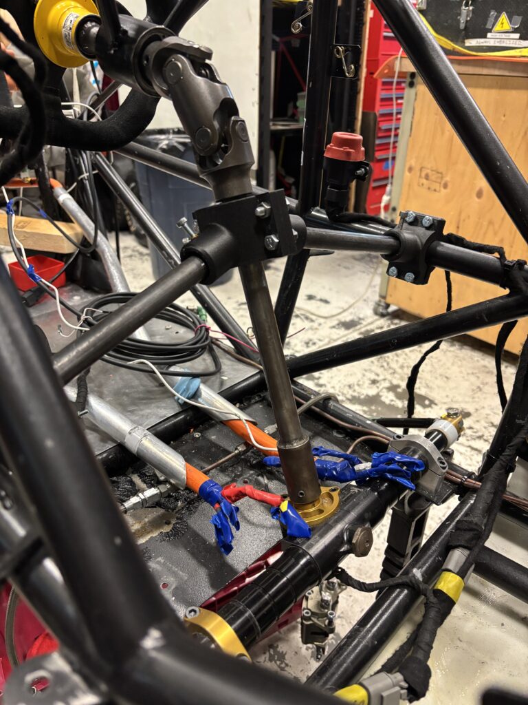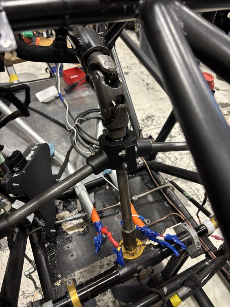 One of the main issues we had in our 2024/25 design cycle was the play we had in our steering column, allowing for significant “free play” at the steering wheel – competition rules mandate less than 7 degrees of free play. To combat this, I added an additional constraining bearing support about our double U-joint.